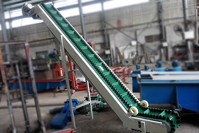 裙邊格(gé)擋皮帶輸送機就是一種大傾角皮帶輸送機,輸送(sòng)帶上麵中間有隔(gé)板,兩邊有裙邊,可以防止物料散落,相對於普通皮帶輸送機有著輸送量大、輸送角度大等特點。...