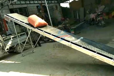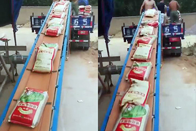 大米袋子(zǐ)裝車用什(shí)麽樣式輸送機呢?推薦我們的小型折疊皮帶輸送機。可以移動,可以調節輸送高度,接家用220V單相電。...